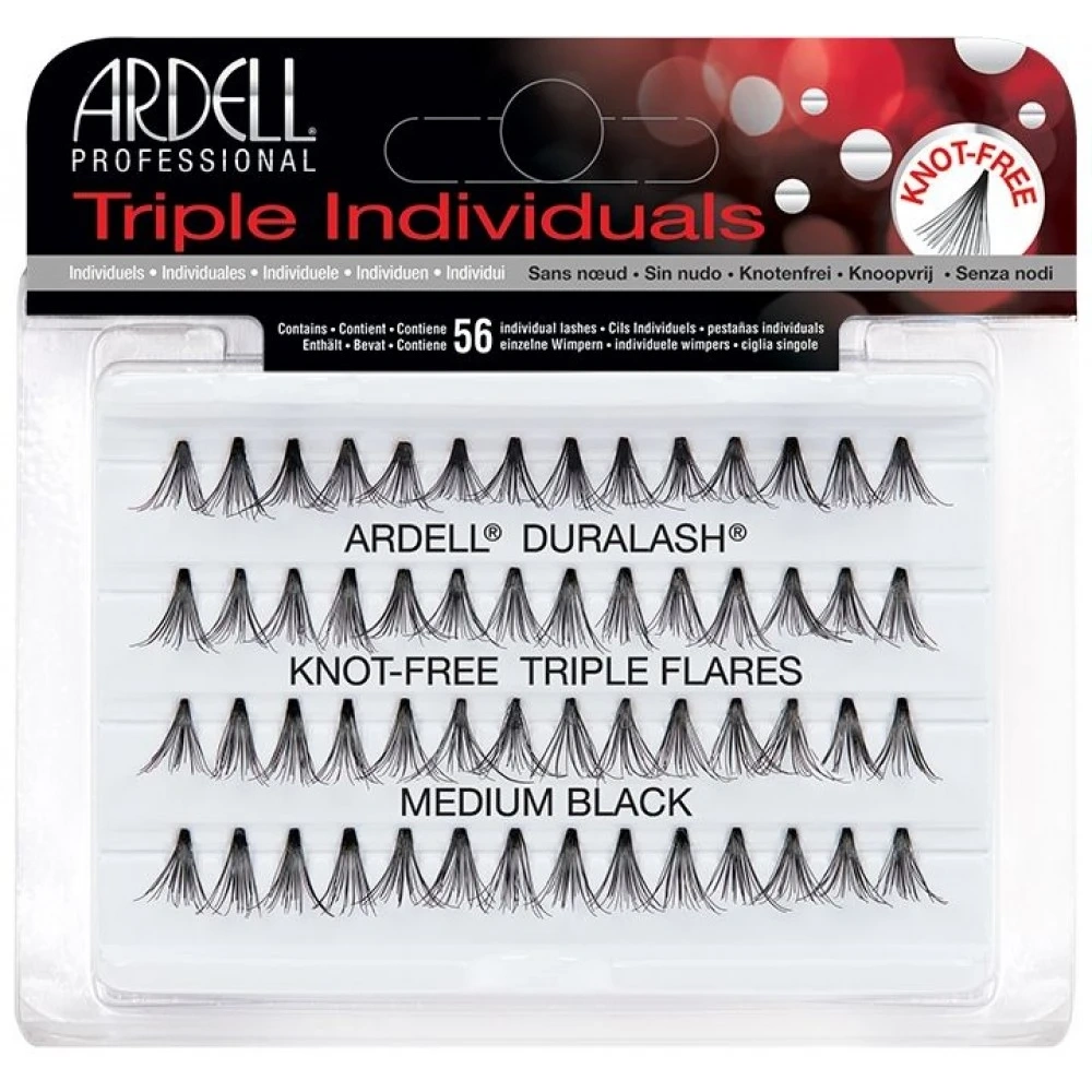 Ardell Manunchiuri Triple fara nod M sunt gene false manunchiuri fine si dese, folosite de persoanele care doresc sa creeze volum si lungime particularizate , lungimea maxima fiind dispusa atat in coltul extern pentru efectul de alungirea al ochiului, cat si pe centru pentru efectul de deschidere a privirii.